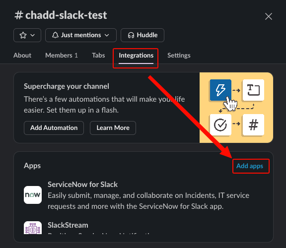 From there just click on the Integrations tab and then click on Add Apps