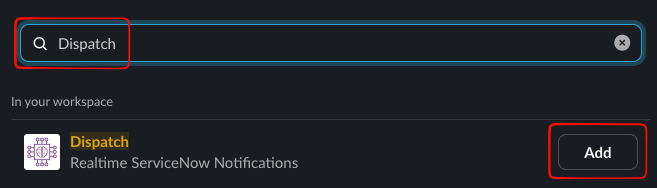 In the new screen simply search for Dispatch and click on the Add button.