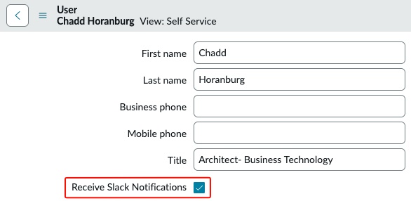 Once your profile loads, you will see a checkbox at the bottom to receive slack notifications.